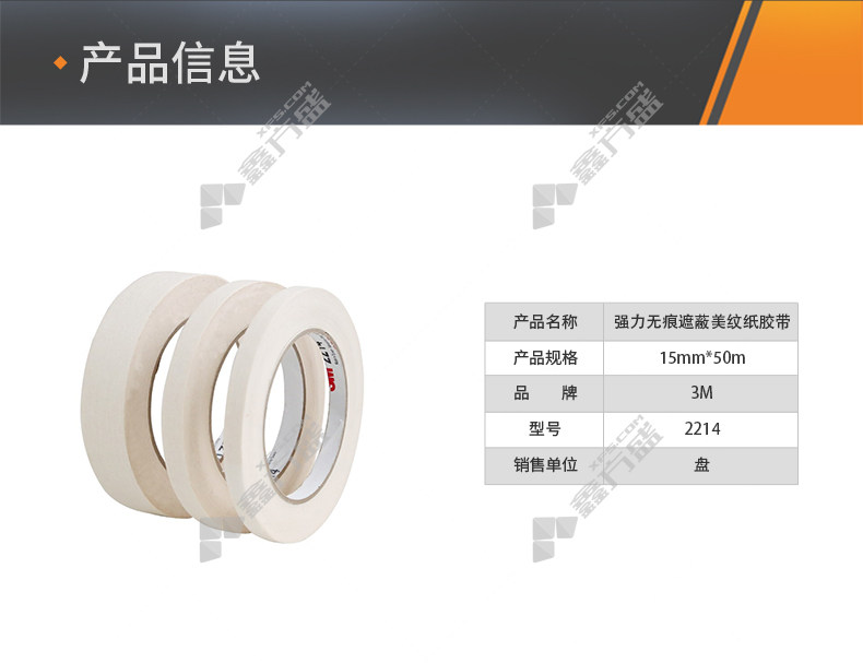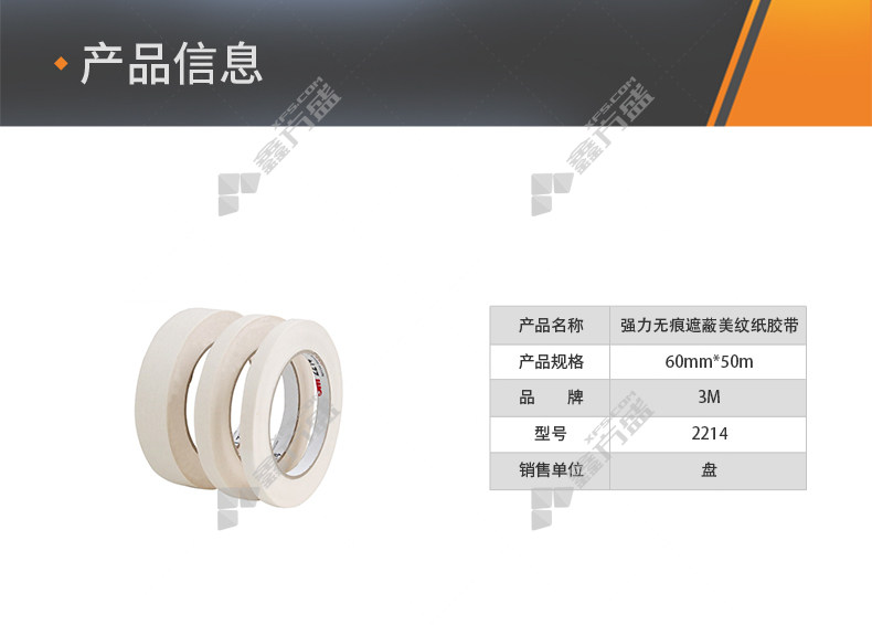 商品名称: 3M 2214 强力无痕遮蔽美纹纸胶带 2214 10mm*50m 白色