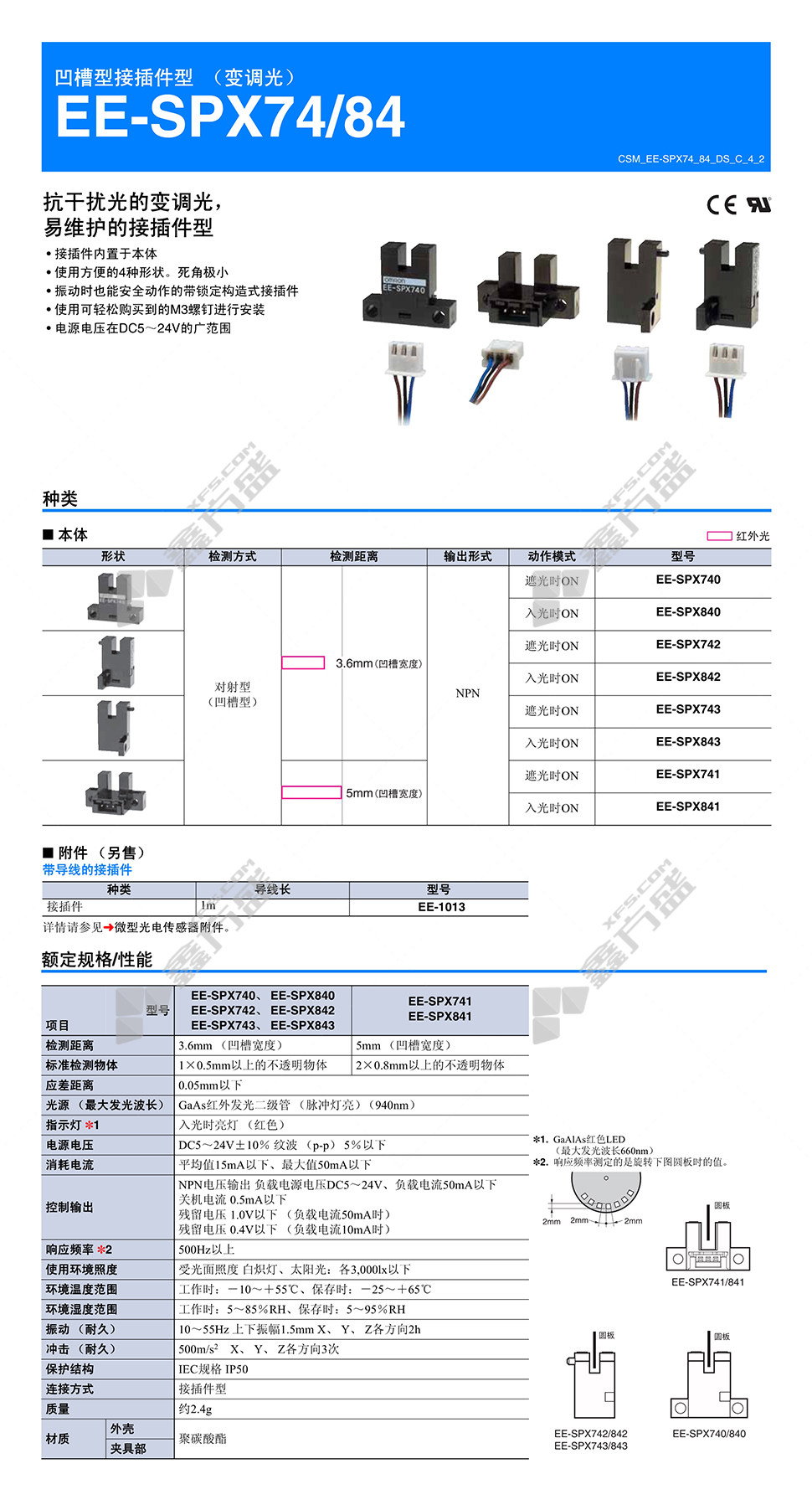 商品名称: 欧姆龙槽型光电传感器 EE-SX672P-WR 1M