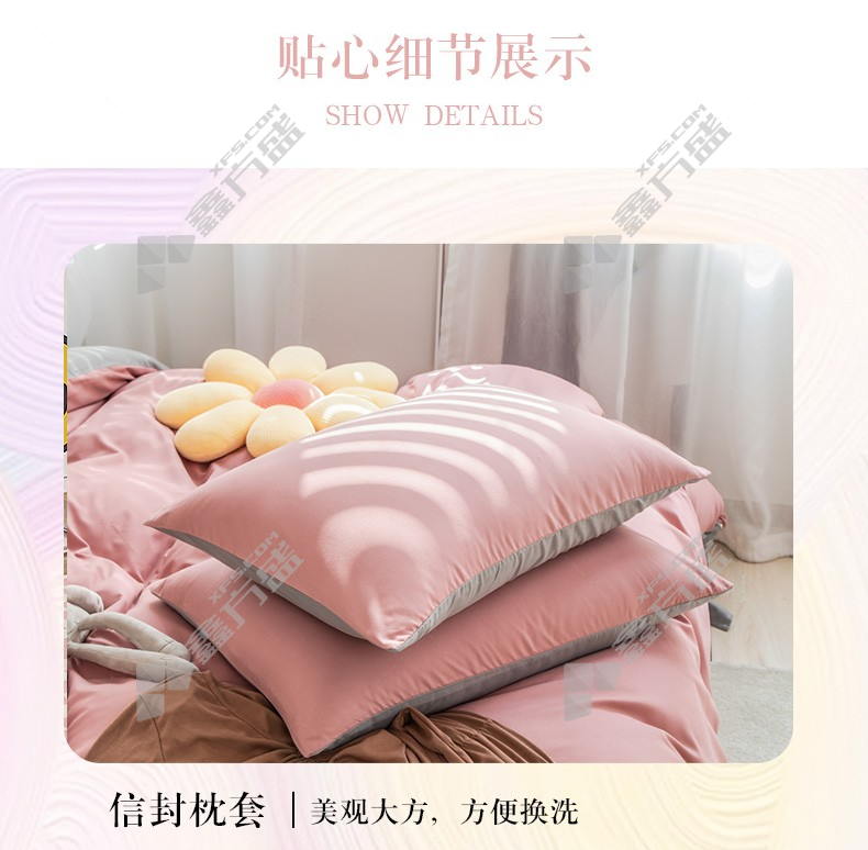 伊伊爱 亲肤棉四件套 200*230cm 豆沙浅灰 TJ0ZF02201666