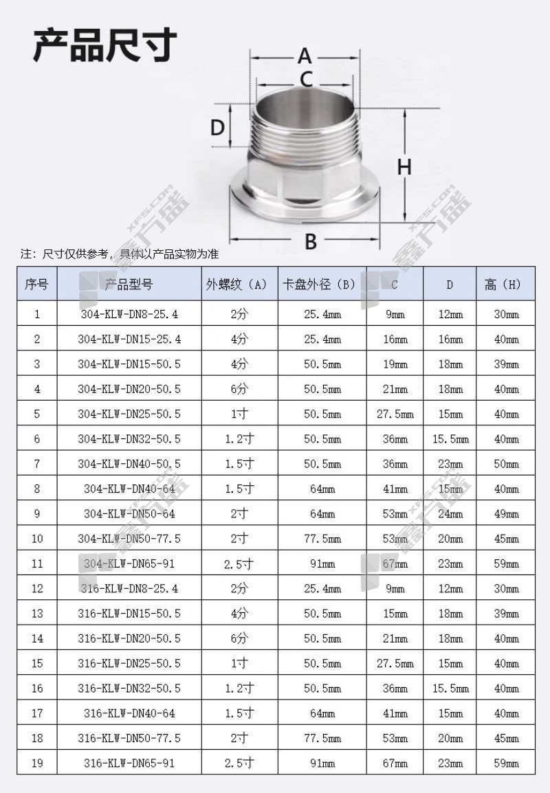 商品规格:304 DN15 卡盘50.5mm