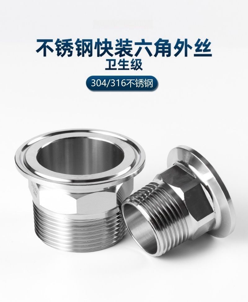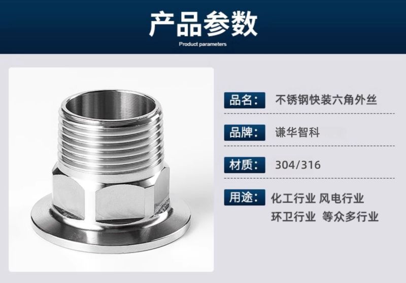 首页 首页 > 谦华智科 不锈钢卡箍六角外丝卡盘快装接头 304 DN15 卡盘50.5mm