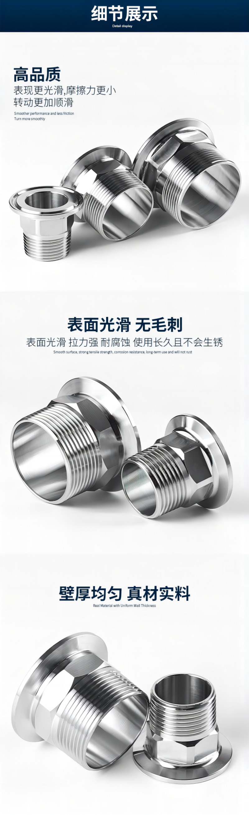 不锈钢快速接头材质:304/316不锈钢