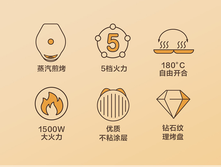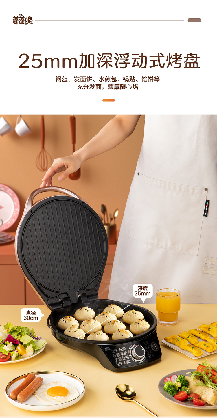 包装清单:电饼铛*1台、电源线*1根、说明书*1本