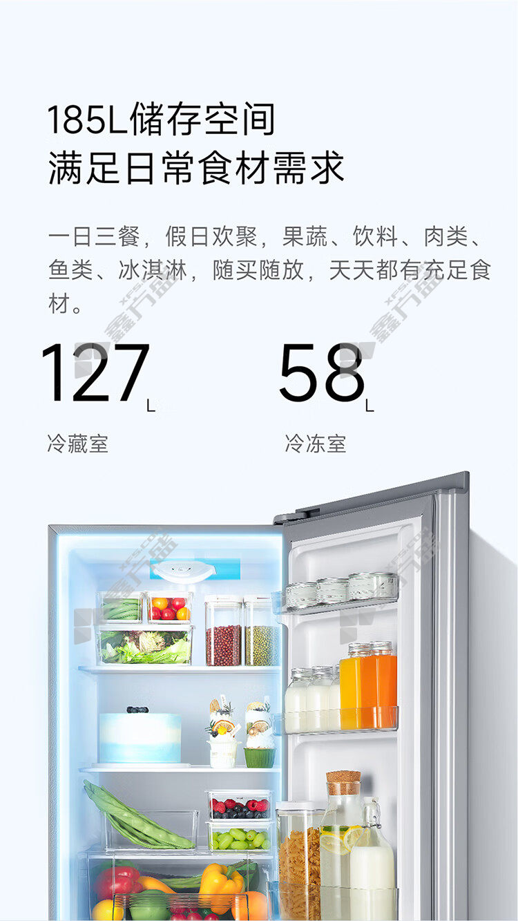 • 小米 BCD-185MDM 定频 米家小型家用冰箱 185L 三级能效 银灰色
